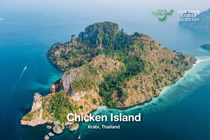 Chicken Island, Krabi a natural wonder shaped by time and tide. Admire the unique rock formations and enjoy snorkeling among vibrant schools of fish in the crystal-clear sea.